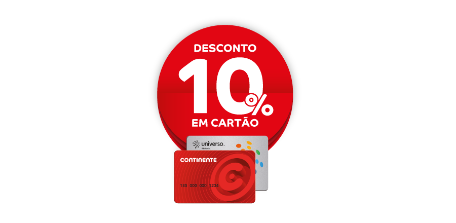 Campanha válida apenas na loja Continente Bom Dia de Proença-a-Nova de 4 a 8 de julho de 2024. Campanha acumulável com promoções em vigor, exceto com outras campanhas de desconto em Cartão Continente. Campanha válida mediante apresentação do cartão continente ou universo. Exceto tabaco, gás em garrafa, livros (ao abrigo da lei do preço fixo), serviços de entrega continente, fórmulas para lactentes (Leites 1ª etapa), cartão Dá presentes, bilhetes para eventos, CTT, jogos Santa Casa e medicamentos não sujeitos a receita médica.