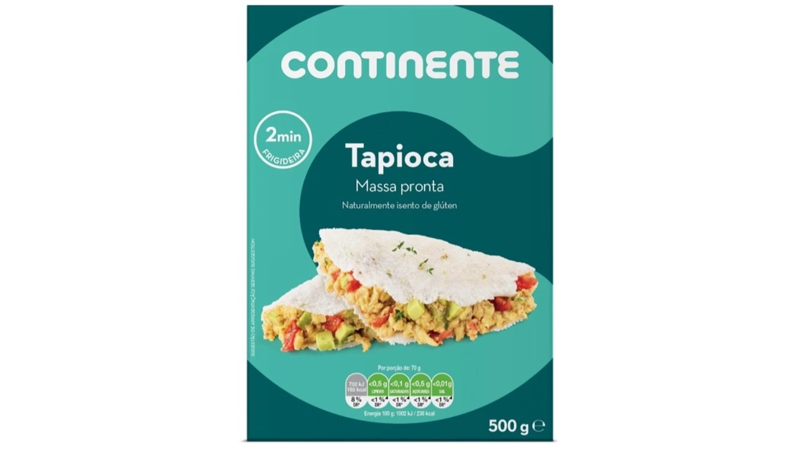 Naturalmente isenta de glúten, a tapioca hidratada Continente chega até si numa embalagem de 500 gramas, no formato de massa pronta. Em apenas 2 minutos na frigideira consegue preparar a base para a confeção das suas receitas preferidas.