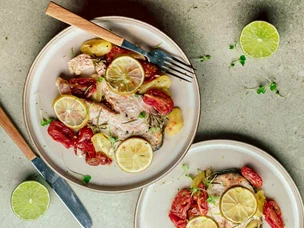 Salmão crocante com tomate cereja
